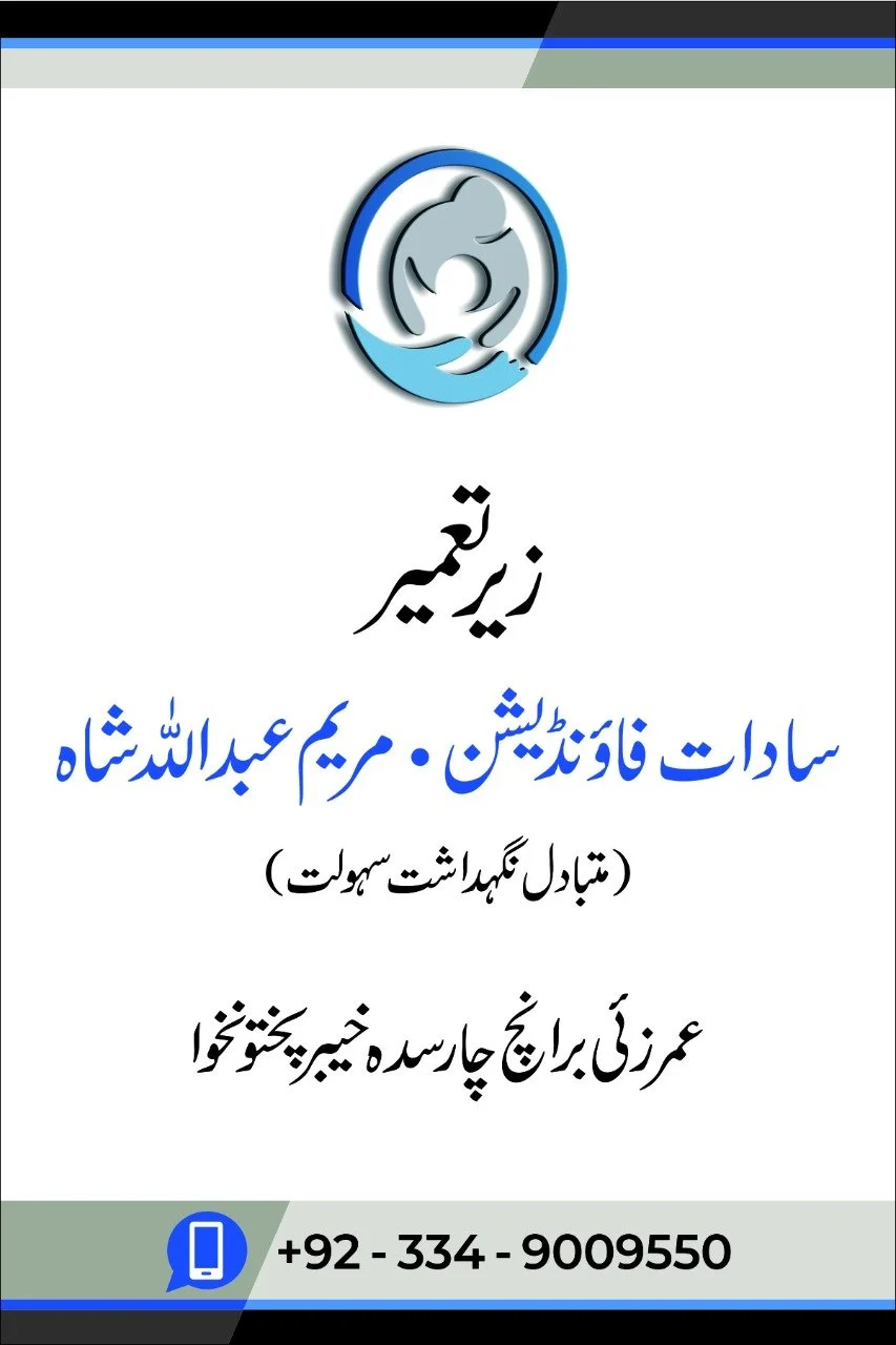 Shah Family in the memory of their beloved mother(Mrs.Maryam Abullah Shah,the first pakhtun lady Graduate, who did her graduation from Kinnaird college Lahore in 1937),has dedicated a land on a prime location in Umerzai-Charsada their ancestral village),for the construction of an Alternate care facility for Thirty children.